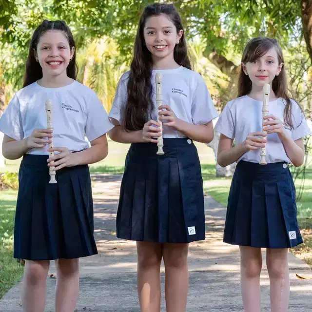 Short-saia infantojuvenil confeccionado em gabardine, com elástico nas costas. Logo do CC no canto inferior da barra.